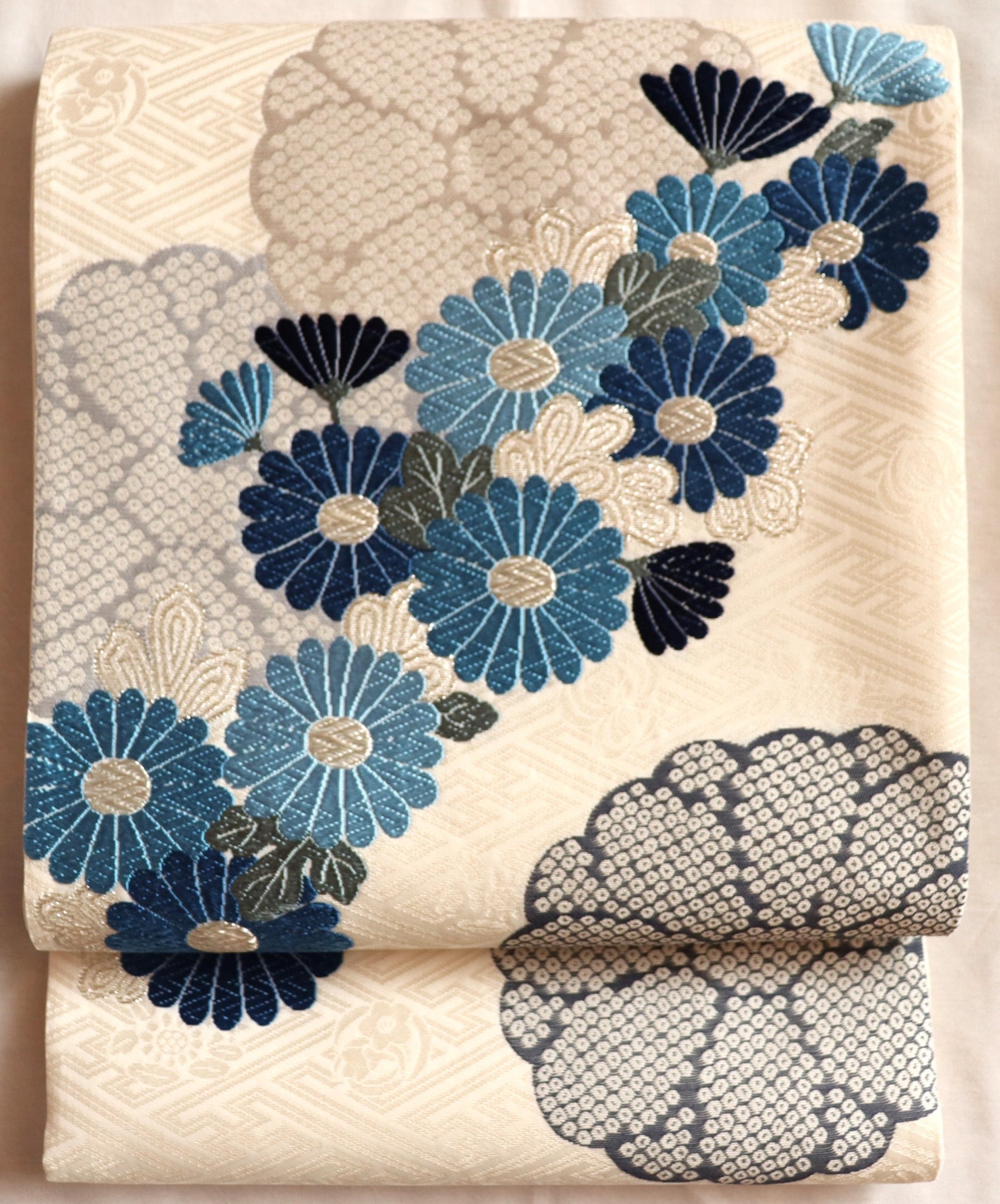 【西陣織】お仕立付き 袋帯 纐纈繍菊花文 ブルー