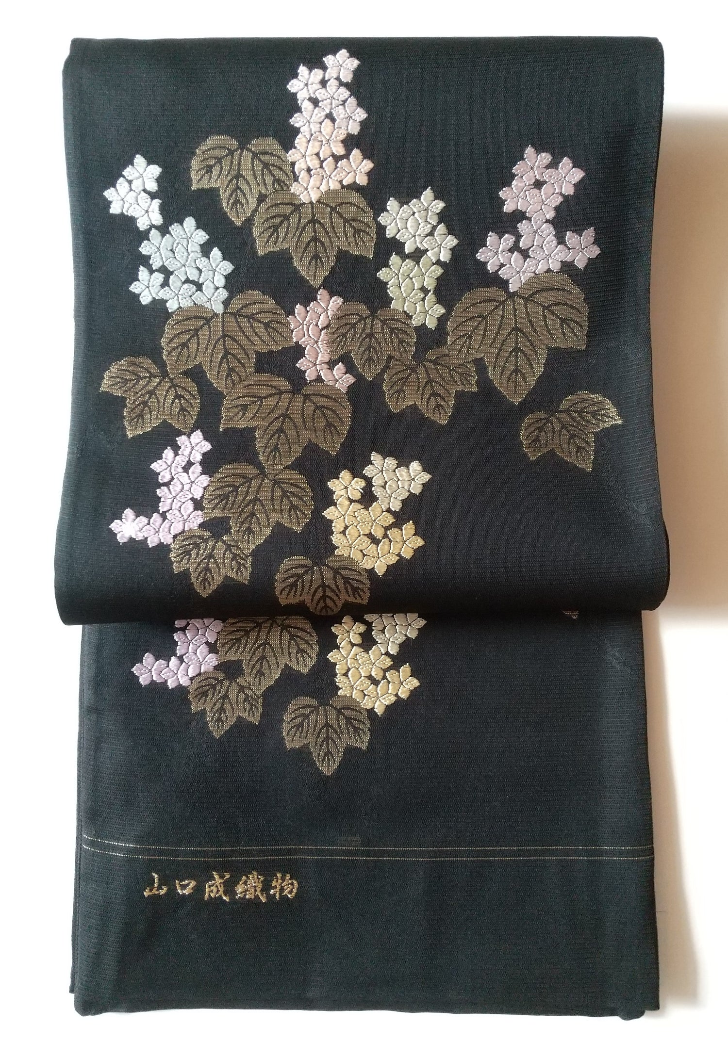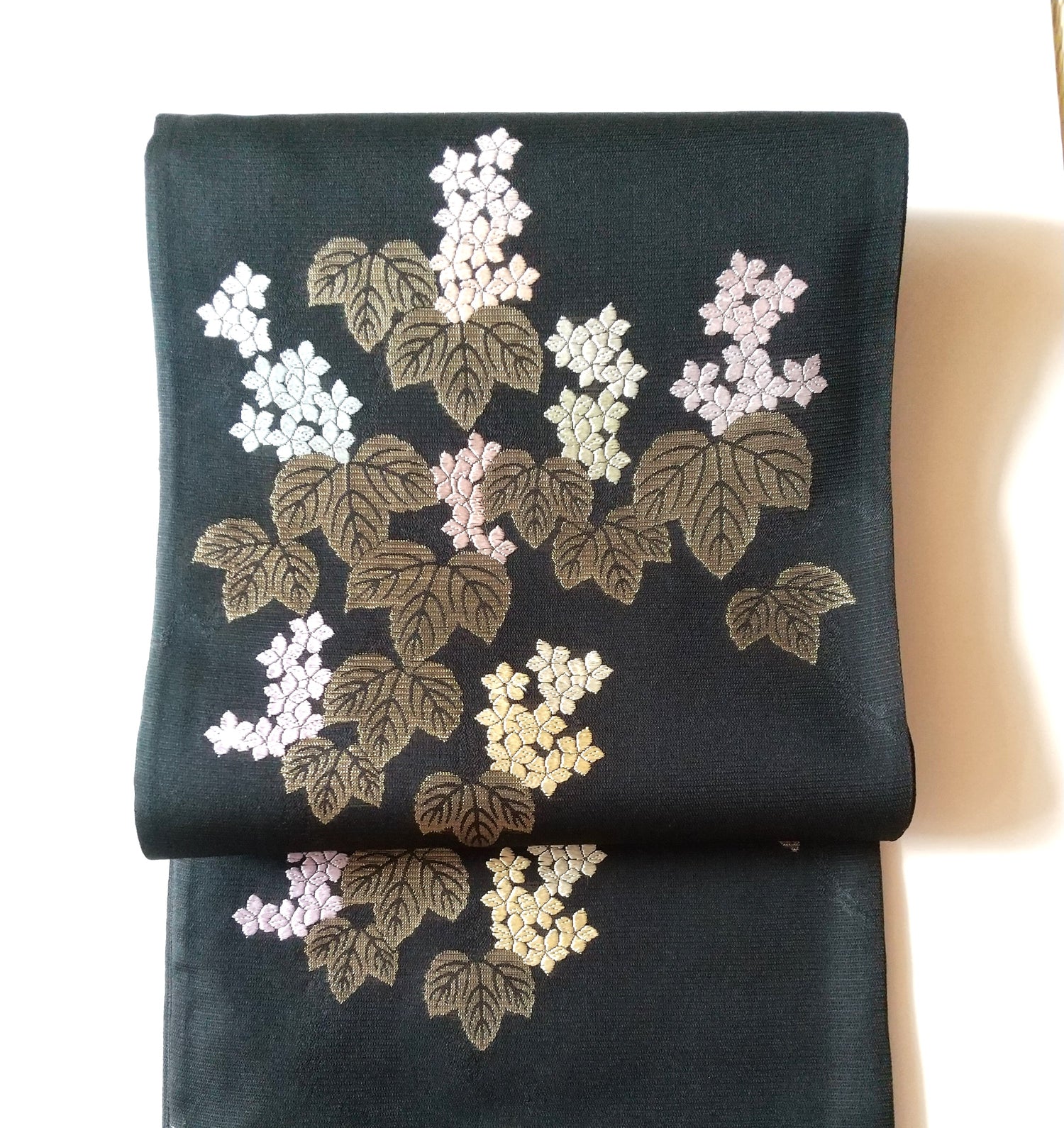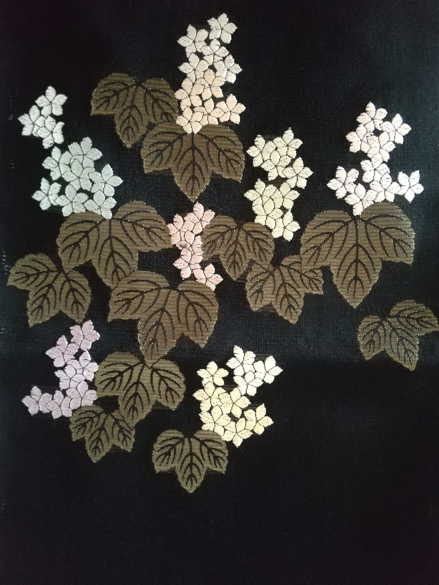西陣織 長絹 絽 夏物 蔦に彩小花紋様 黒地 淡配色