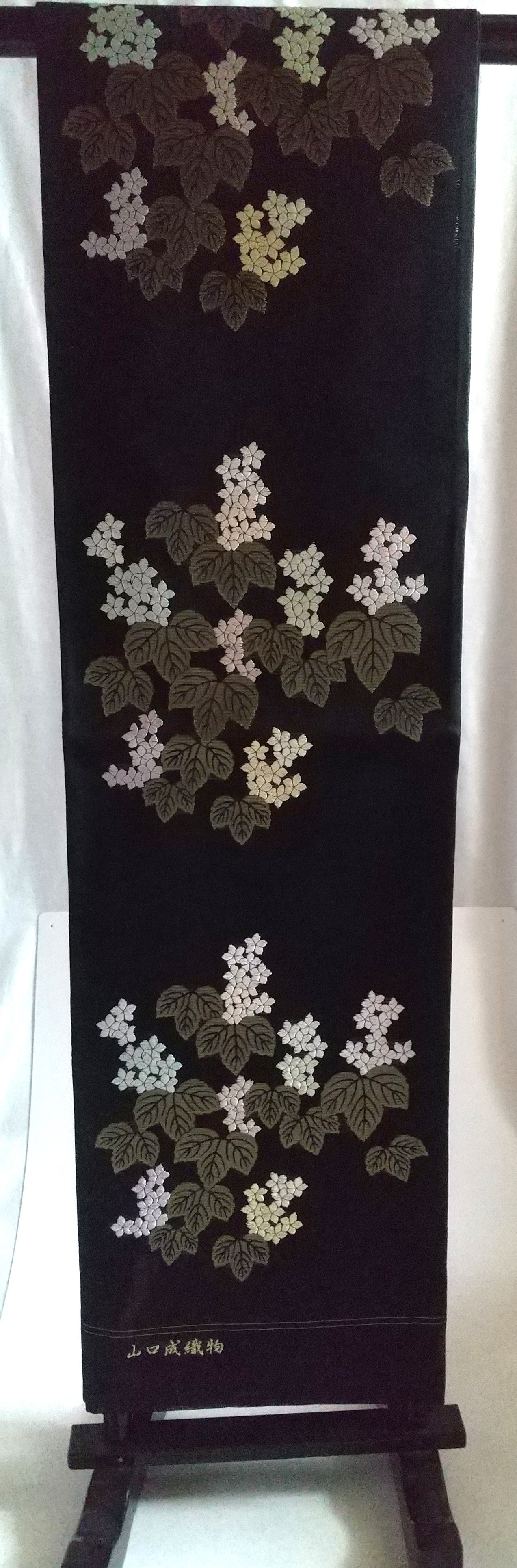 【西陣織】お仕立付き 山口成織物 長絹 絽 夏物 蔦に彩小花紋様 黒地 淡配色